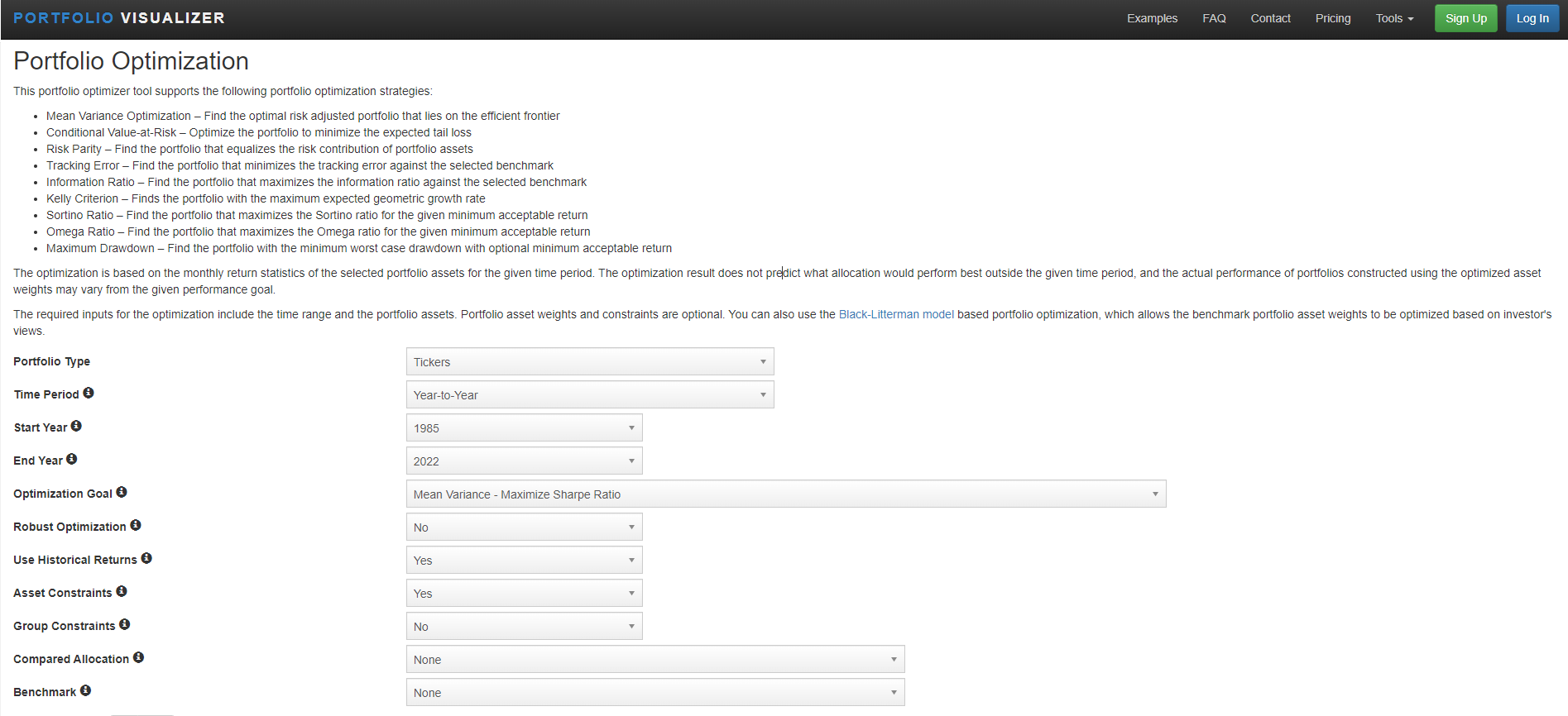 오늘은 포트폴리오 비주얼라이저(PORTFOLIO VISUALIZER)의 Portfolio Optimization - Portfolio Optimization부분의 사용법을 알아볼거에요.